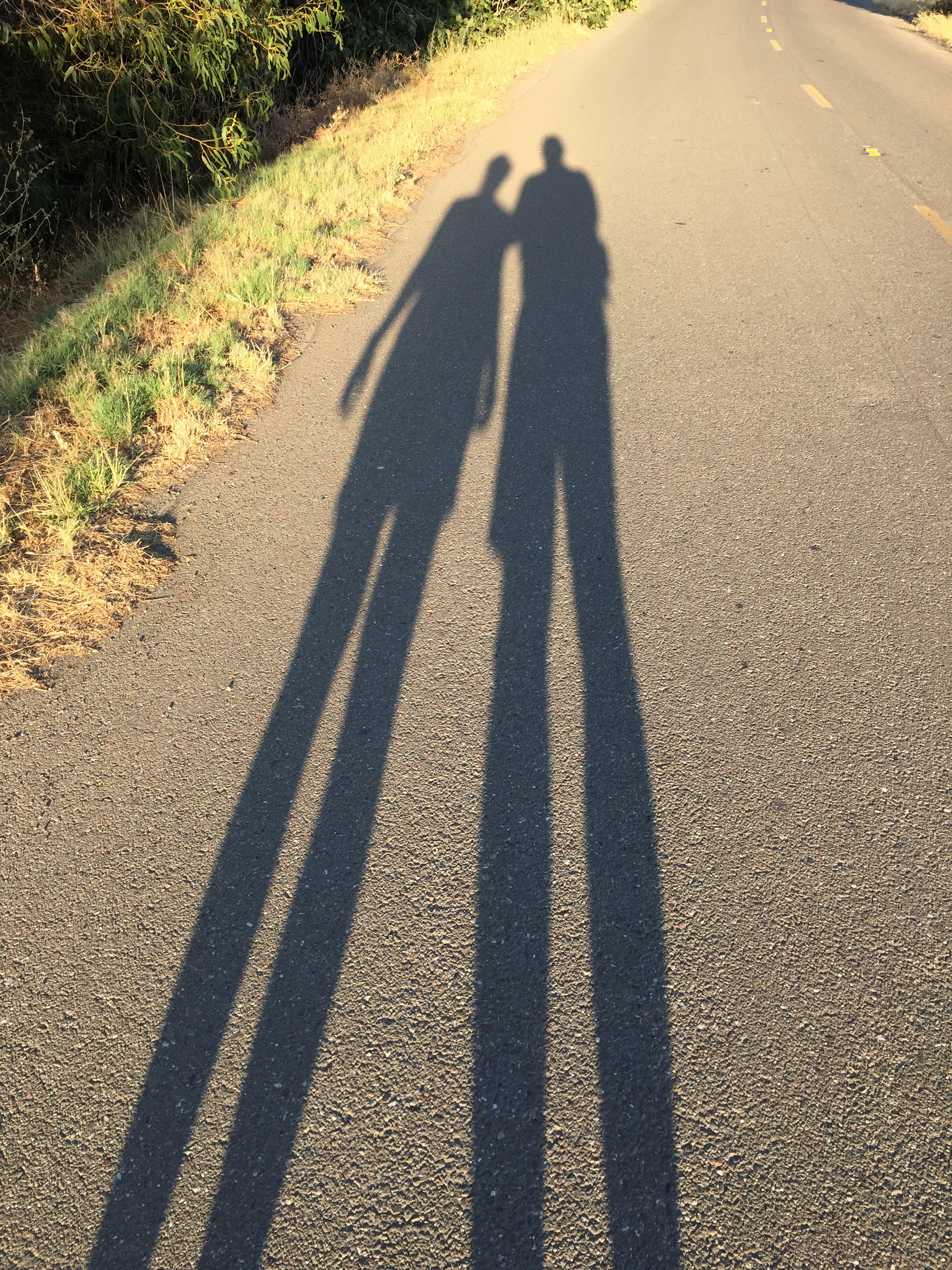 On our walk home the sun was setting and made for a romantic walk in the warm sun contemplating what it would be like if we had a bigger boat to deal with the wind and waves. We were Giants in the setting sun.